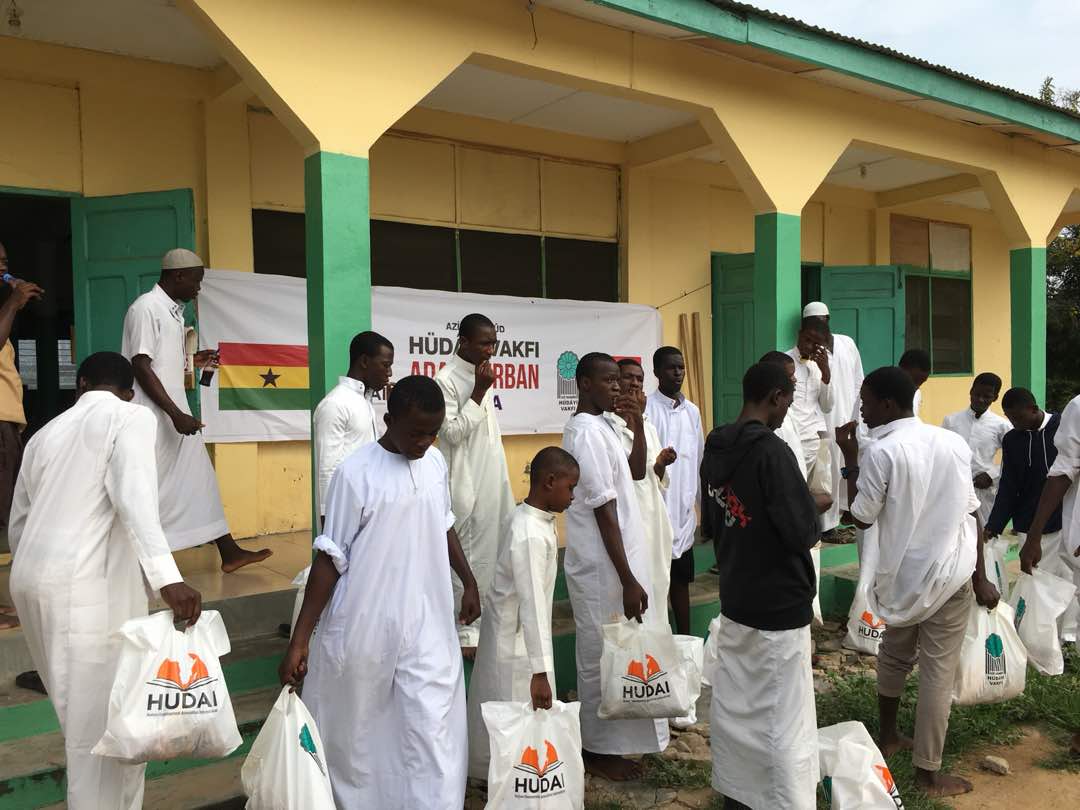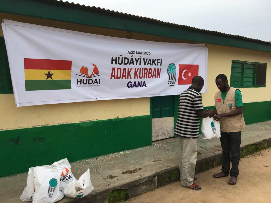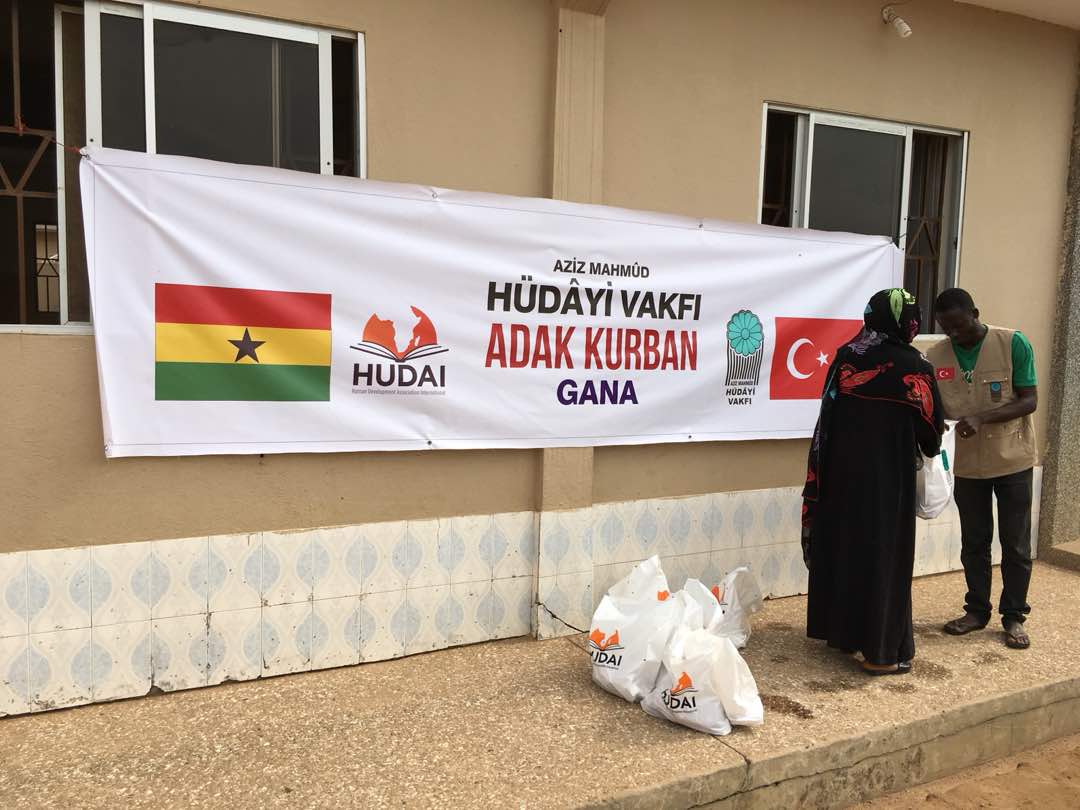 Başkent Akra’da kesilen adak kurbanların etleri Osu, Labadi, Kaukudi ve Tuba bölgelerinde çoğunluğu dul, yetim ve kimsesizlerden oluşan yaklaşık 300 aileye 5’er kiloluk poşetler halinde dağıtıldı.
