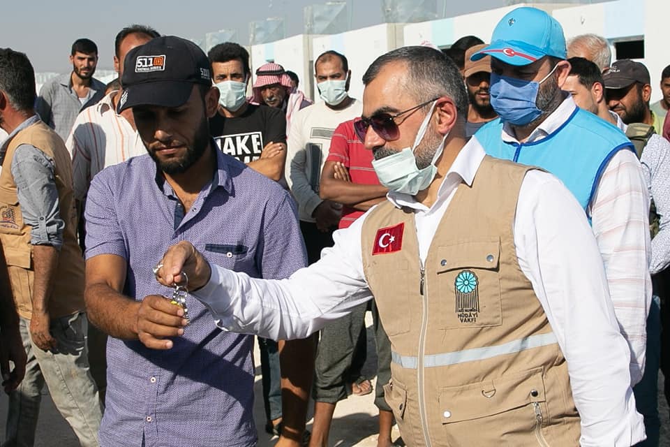 Suriye’de savaş mağdurlarına yönelik imar ve ihya çalışmaları gerçekleştiriyoruz.Bu doğrultuda Vakfımızın desteği, Türkiye Diyanet Vakfı’nın işbirliği ile ilk olarak Suriye’nin Azez bölgesindeki Mukaveme kampı içerisinde yapımı tamamlanan briket evler sahiplerine teslim edildi.