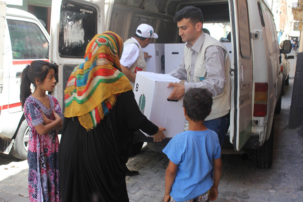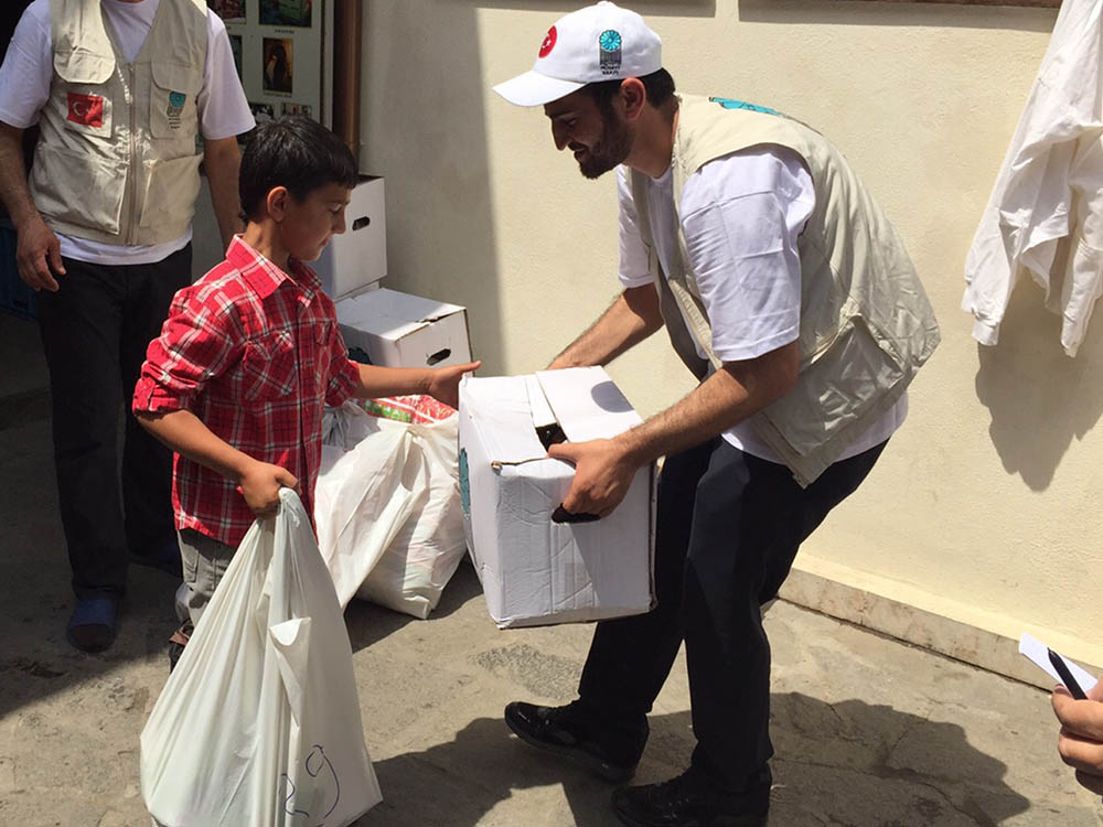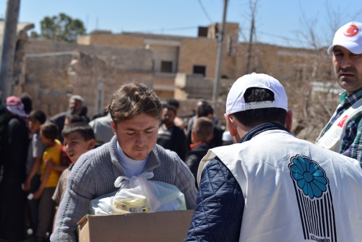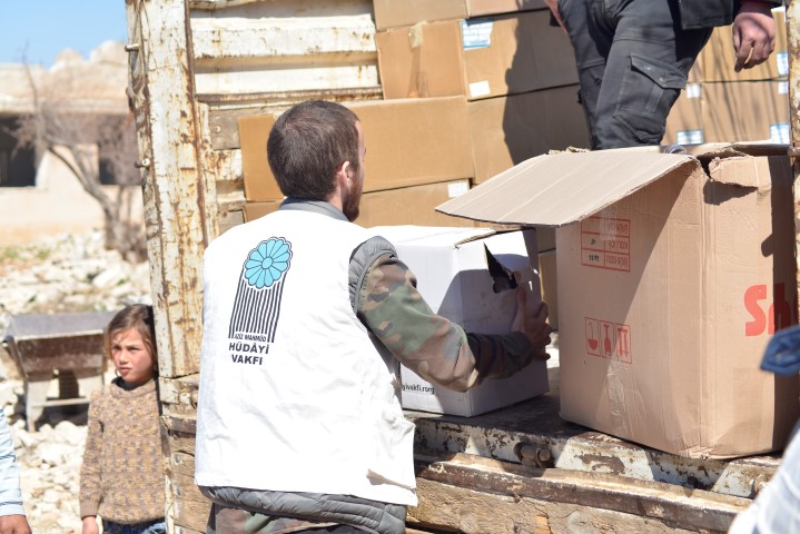 Üsküdar Küçük Çamlıca’daki vakıf merkezimizdeki insani yardım depomuzda paketlenerek hazırlanan gıda yardımlarımız, insani yardım tırlarımıza yüklenerek yurt içinde ayrıca Hatay, Kilis, Osmaniye, Urfa illerimizdeki kamplarda ve sınıra yakın Suriye’nin Azez, İdlip, Cerablus ve Halep civarındaki çadırlarda kalan savaş mağdurlarına ulaştırılmaktadır.