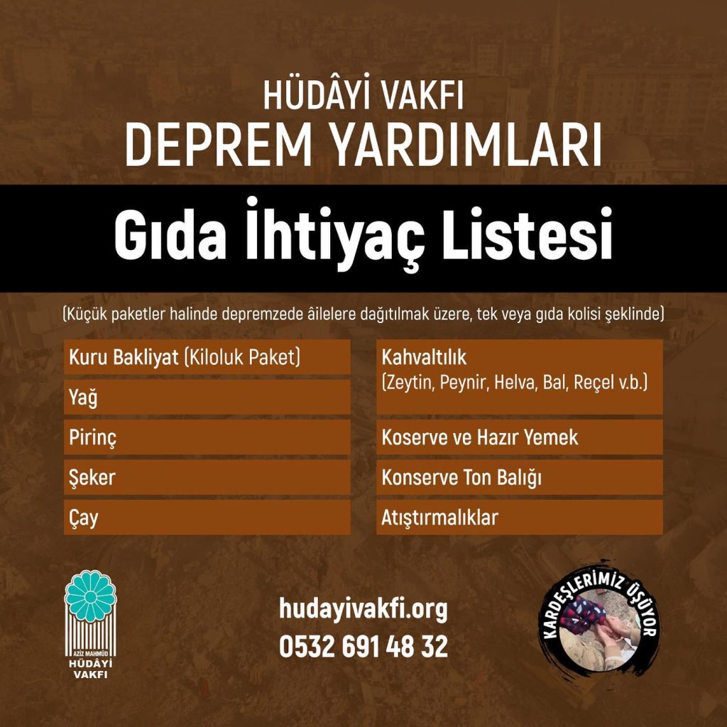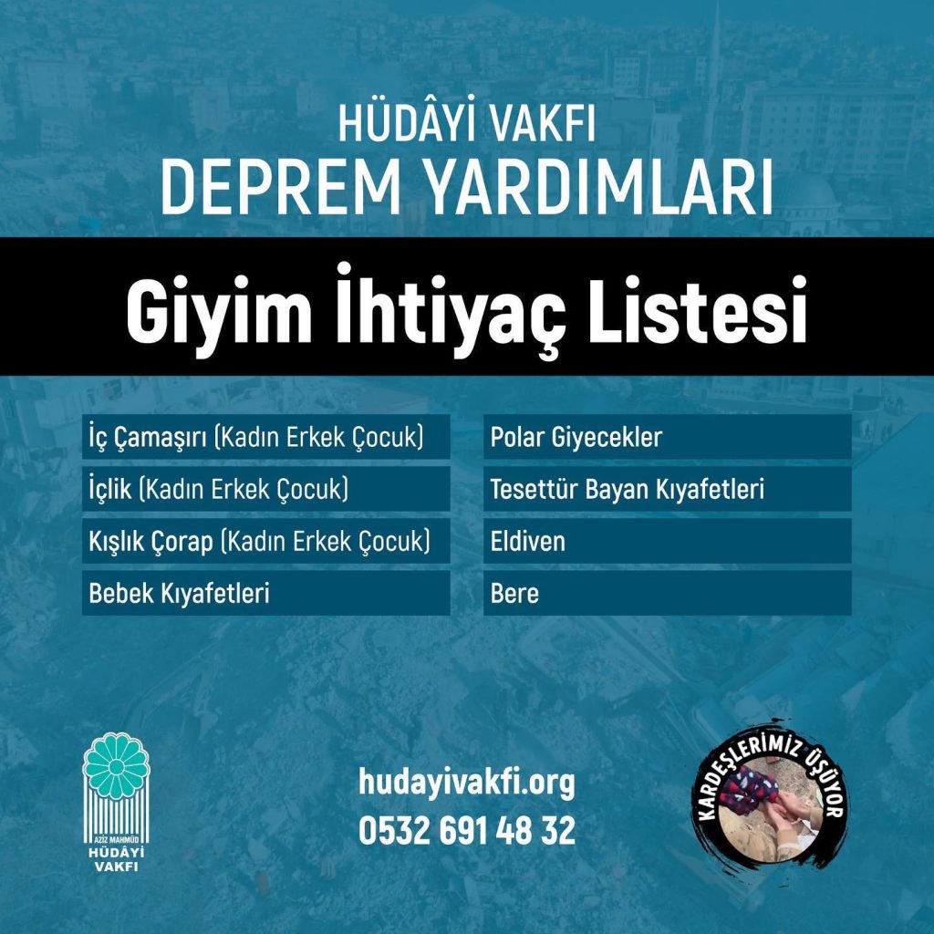 Deprem Bölgesi Öncelikli İhtiyaç Listesi