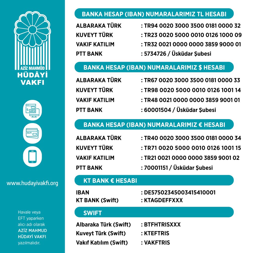 (Not: Havale veya EFT yaparken Alıcı Adı olarak AZİZ MAHMUD HÜDAYİ VAKFI yazılmalıdır.)