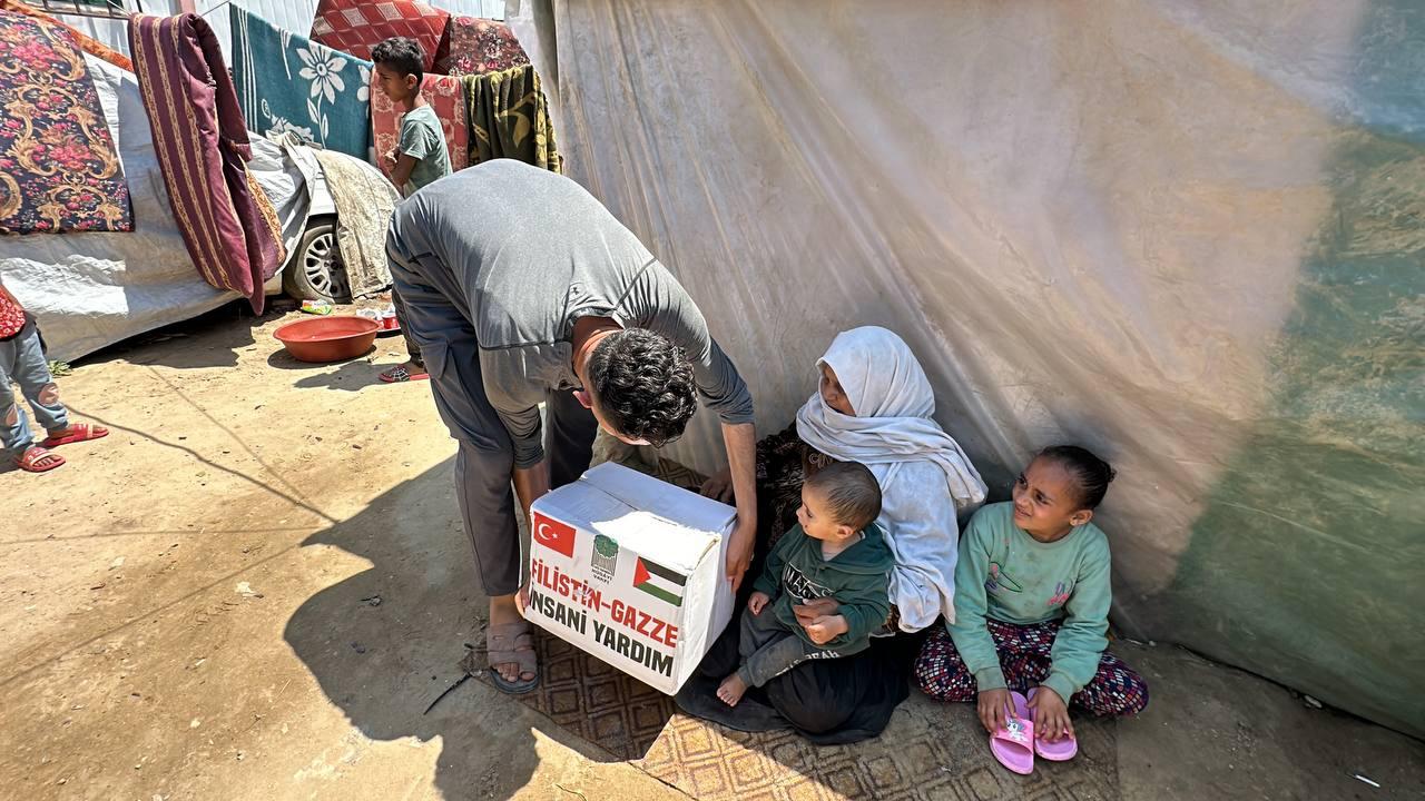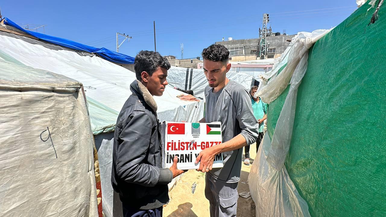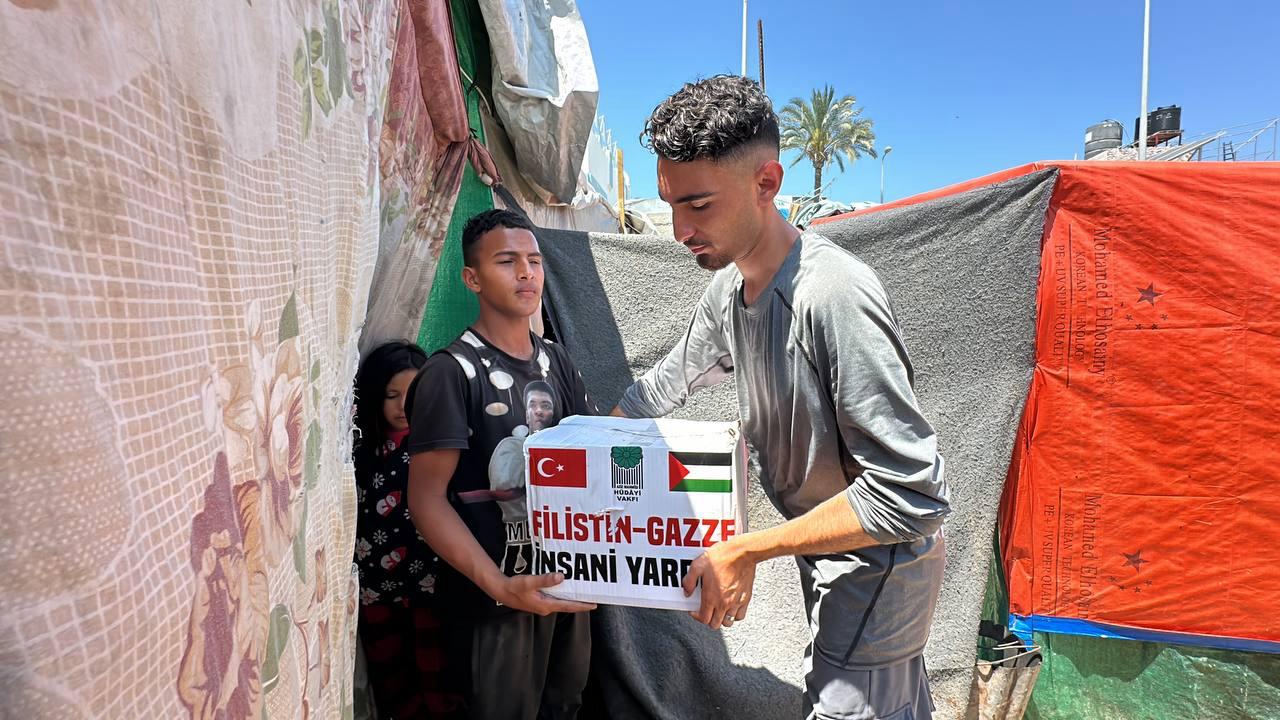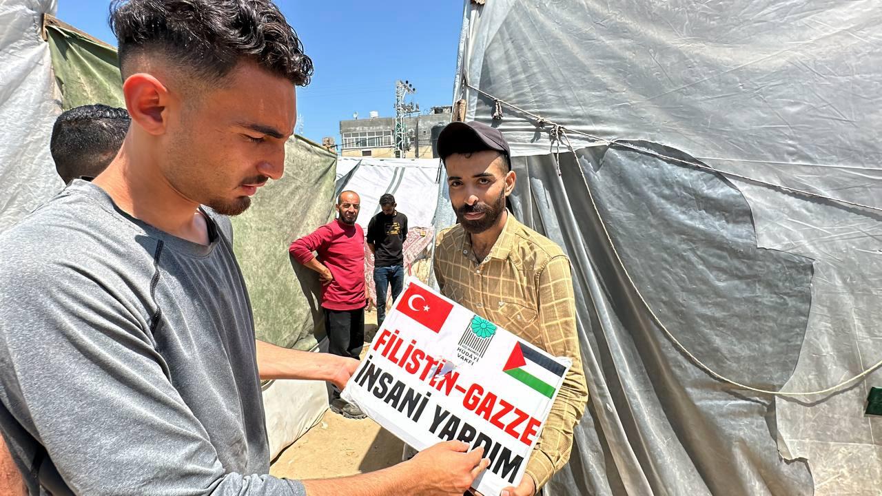 Hüdayi Vakfı olarak, Gazze'nin Refah bölgesinde bulunan çadır kentlerdeki ihtiyaç sahibi kardeşlerimize yardım eli uzatmaya devam ediyoruz.
