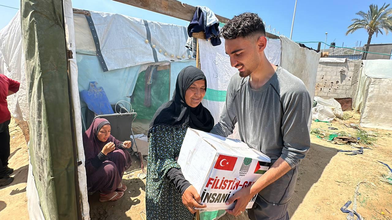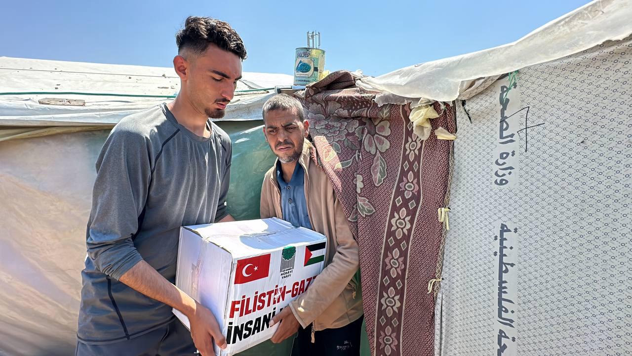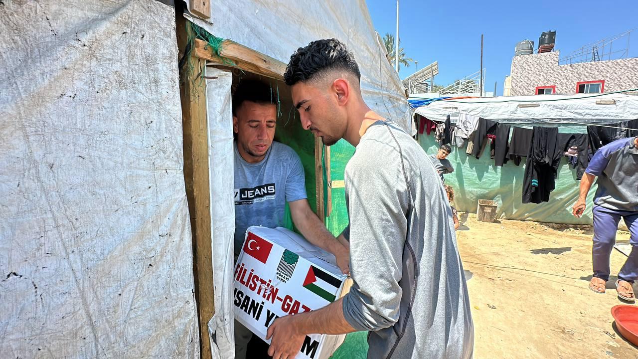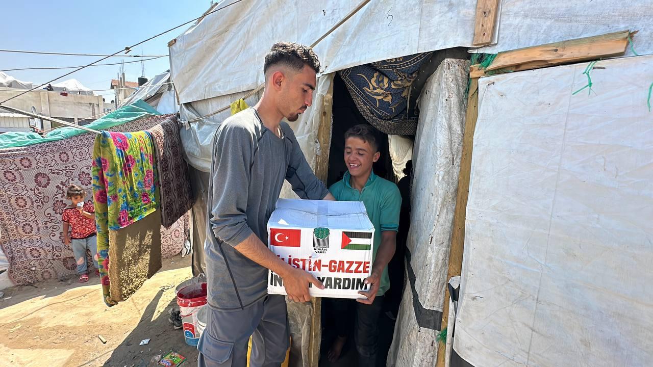 Hüdayi Vakfı olarak, Gazze'nin Refah bölgesinde bulunan çadır kentlerdeki ihtiyaç sahibi kardeşlerimize yardım eli uzatmaya devam ediyoruz.