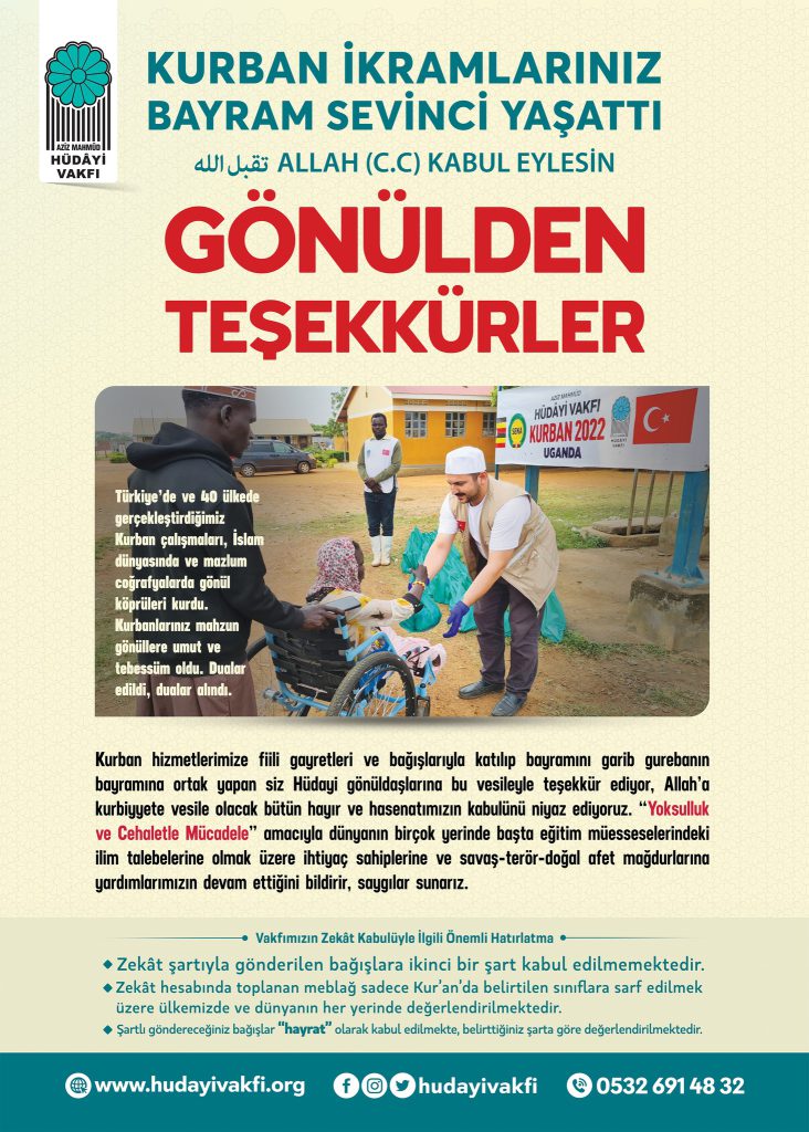 Türkiye'de ve 40 ülkede gerçekleştirdiğimiz kurban çalışmaları, İslam dünyasında ve mazlum coğrafyalarda gönül köprüleri kurdu. Kurbanlarınız mahzun gönüllere umut ve tebessüm oldu. Dualar edildi, dualar alındı.
