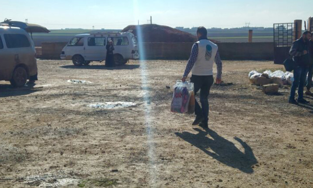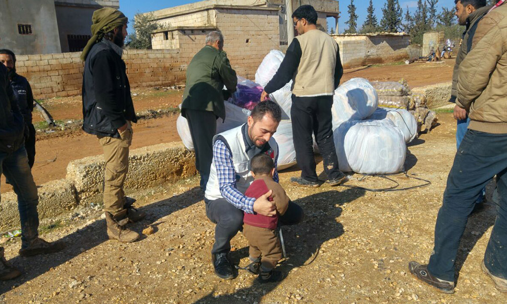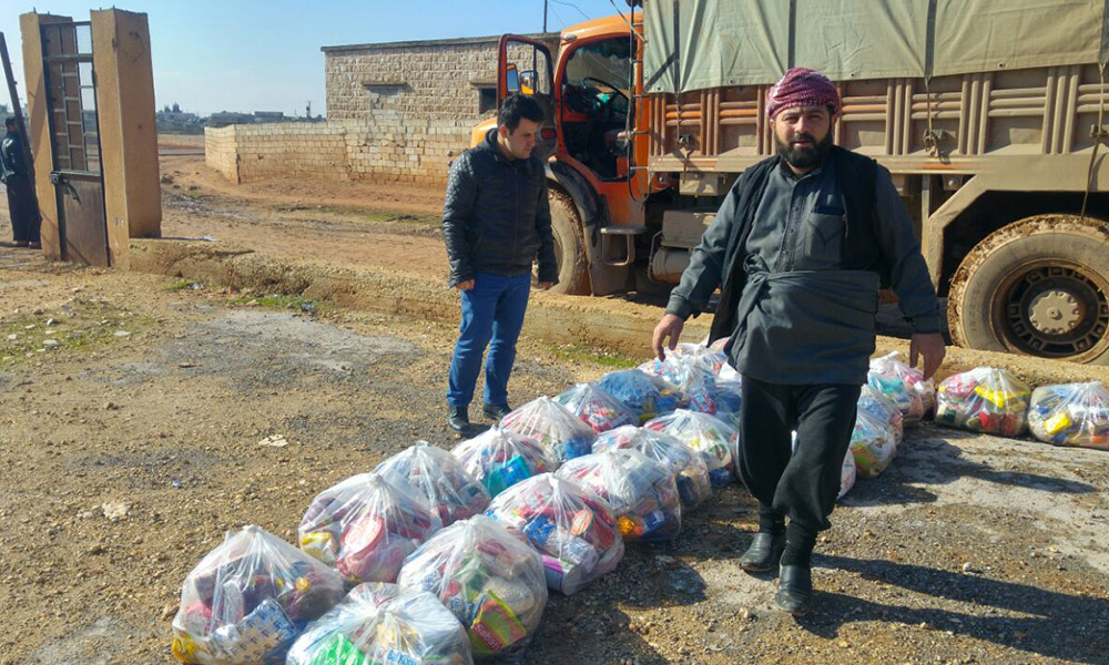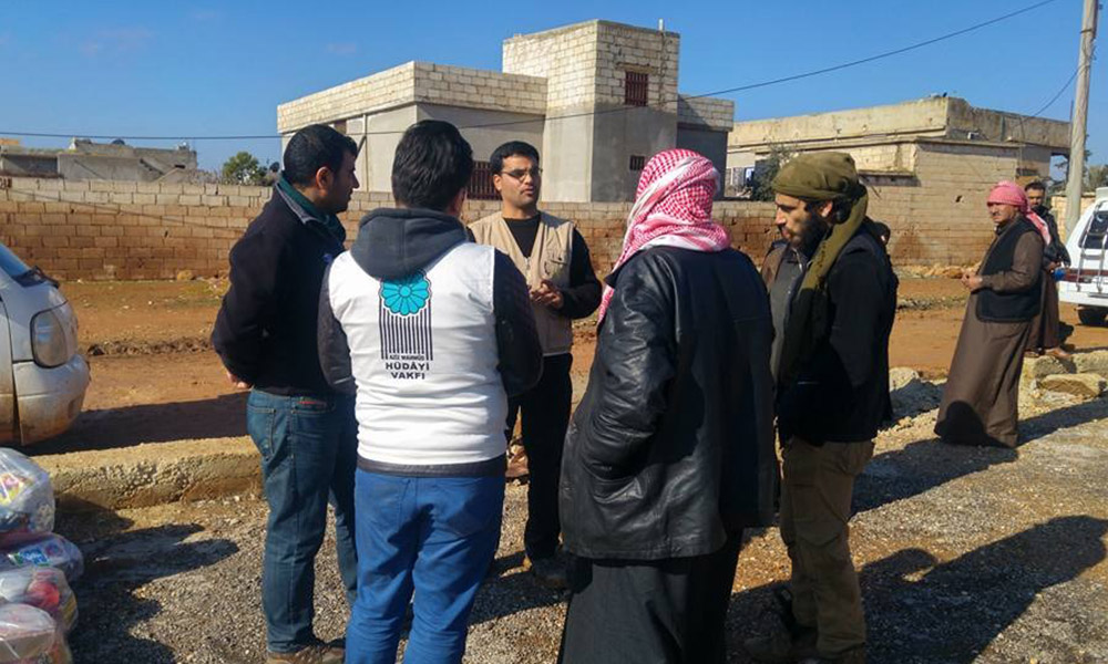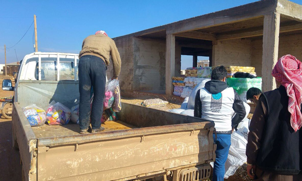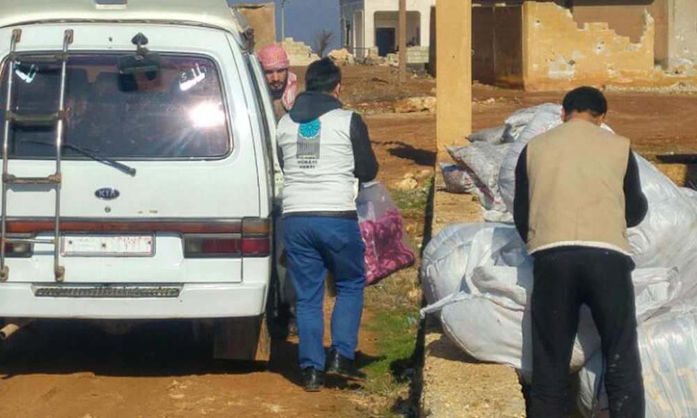 Hüdayi Vakfı İnsani Yardım Birimi personelleri Ahmet Doğan ve Nihat Coşkun Bey’in idaresinde ulaştırılan yardımlar, Halep’in köylerine ve İdlip’te bilfiil dağıtıldı.