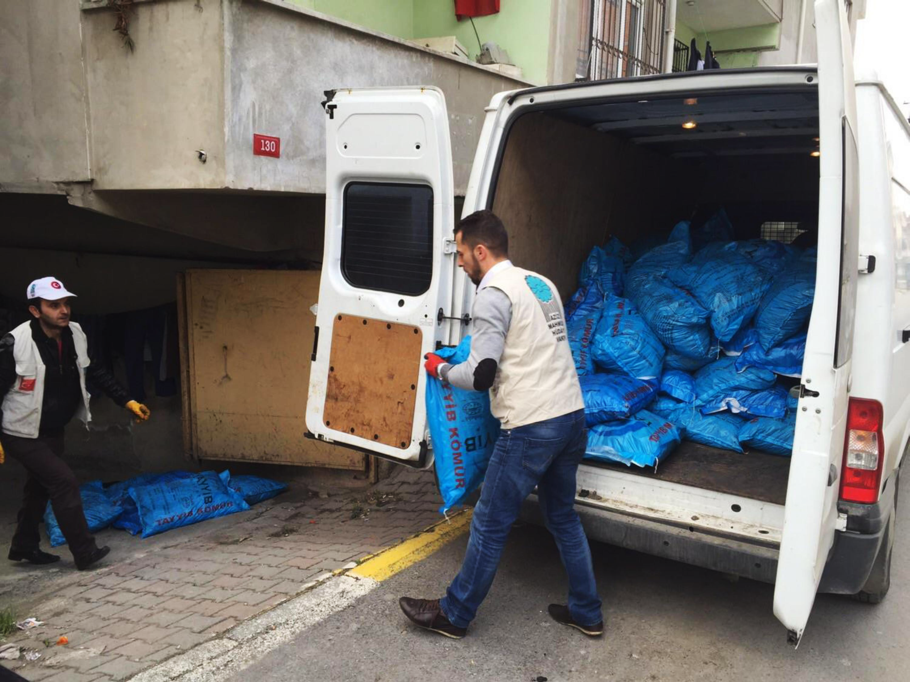 Başta Sultanbeyli, Sancaktepe, Ümraniye ve Esenyurt ilçeleri olmak üzere İstanbul’un birçok yerinde yaklaşık 5 bin ihtiyaç sahibi aileye her ay düzenli olarak gıda kolisi, temizlik malzemeleri, çocuk bezi, muhtelif giyim eşyaları vb. ayni yardım malzemesi dağıtılıyor.