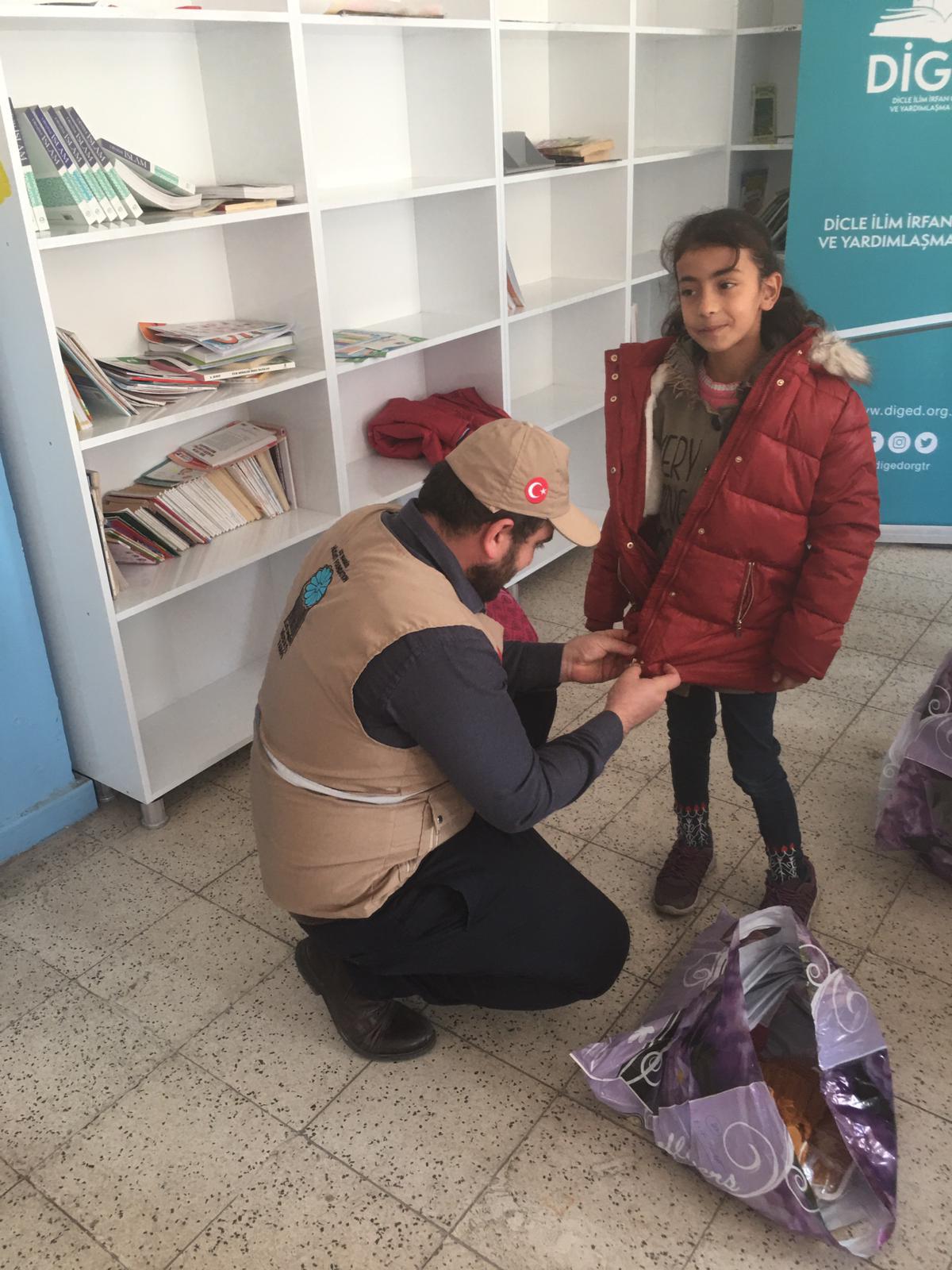 İstanbul’daki yurtlarımızda kalan üniversite öğrencileri “Haydi Birlikte Isınalım” sloganıyla bir sosyal sorumluluk projesine imza attılar. Kendi aralarında topladıkları hediyelerle Diyarbakır’ın Yenişehir ilçesindeki Mehmet Fevzi Durucan İlkokulunda okuyan 80 öğrenciye bot, kaban, atkı, bere ve eldiven hediye ettiler. Bu anlamlı proje Diyarbakır’da eğitim-kültür ve yardımlaşma alanlarında hizmet vermeye başlayan Dicle İlim İrfan Gençlik ve Yardımlaşma Derneği (DİGED) ile birlikte gerçekleştirildi.