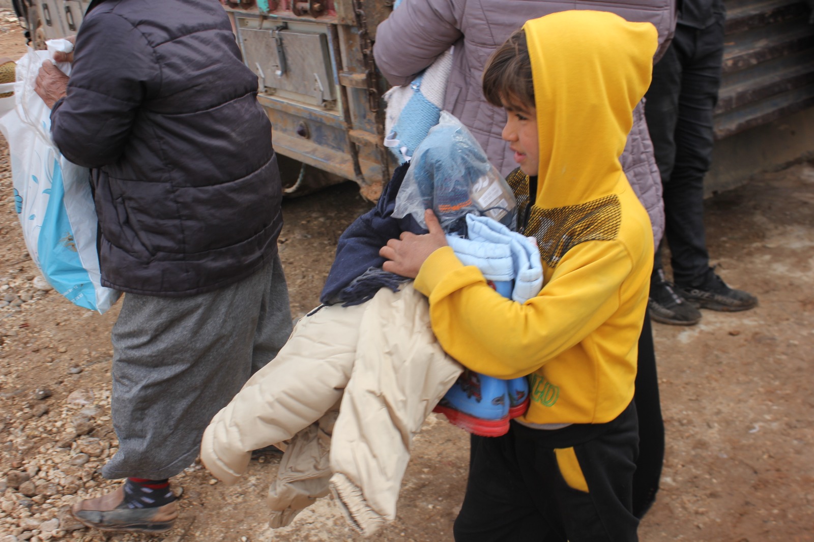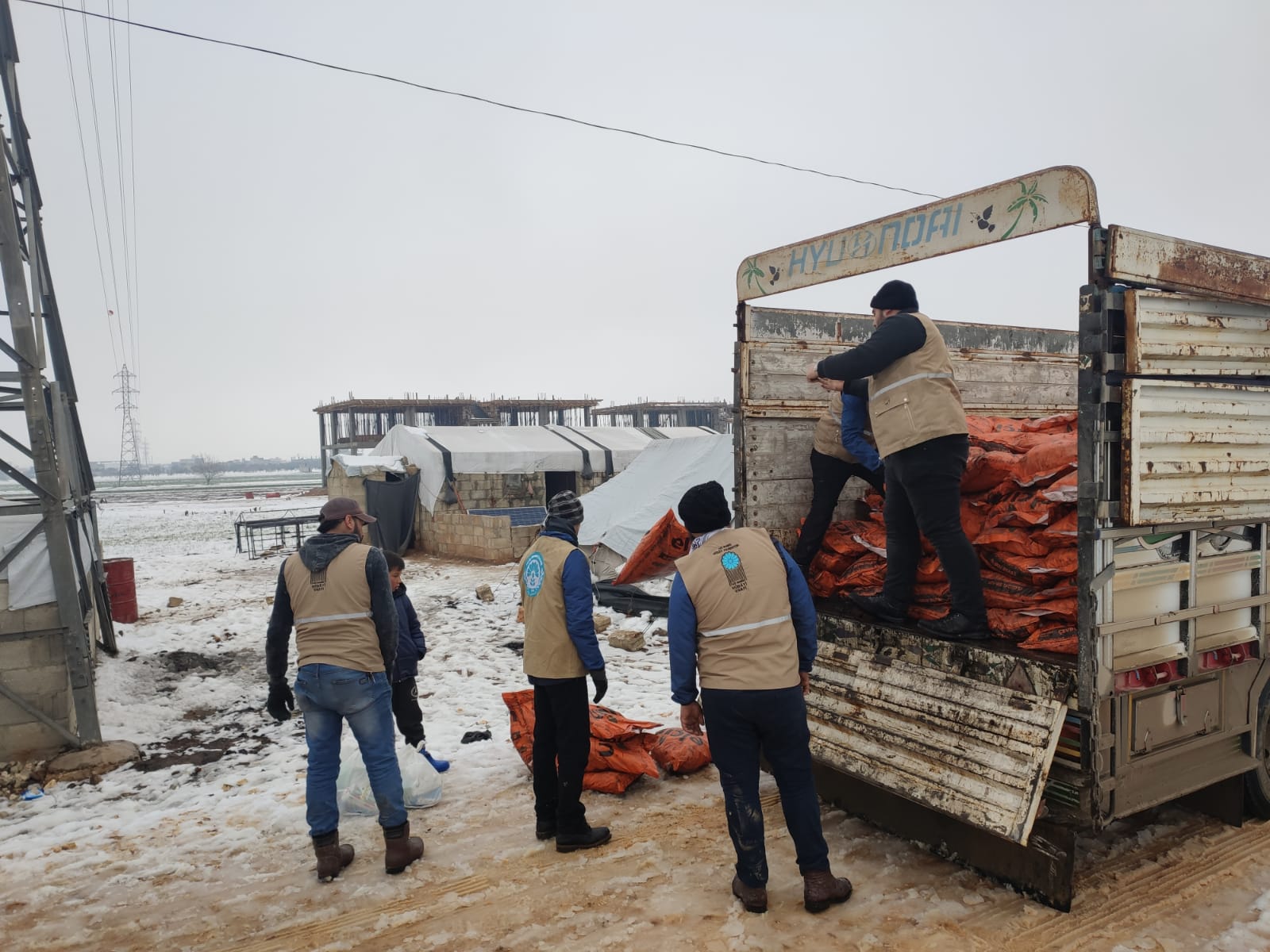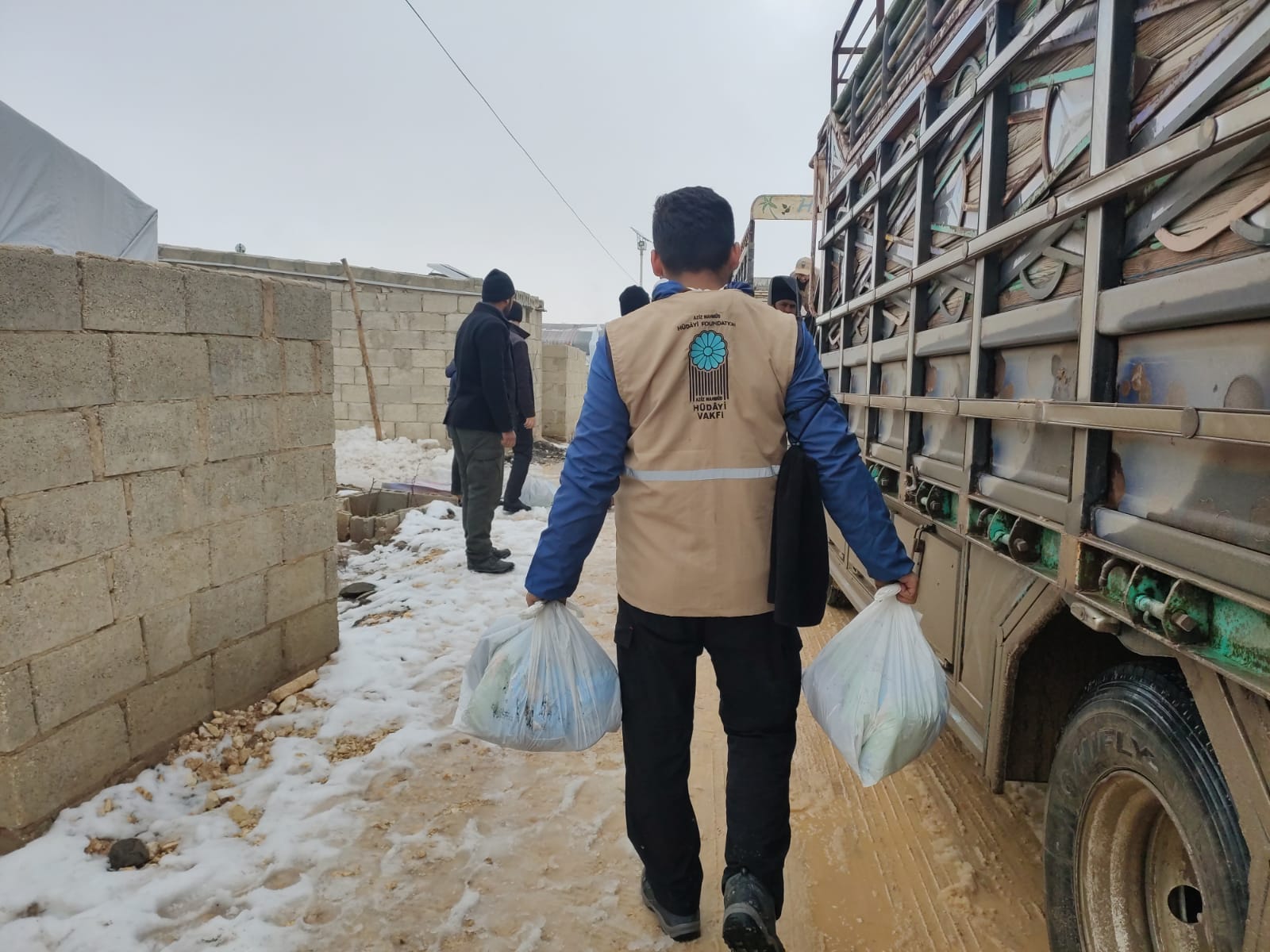 Suriye’nin İdlib, Azez, Afrin bölgelerinde yoğun kar yağışı altında çadır kamplarda hayat mücadelesi veren savaş mağdurlarına; soba, kömür, battaniye, branda, halı, hasır, sünger yatak, kışlık kıyafet, bot, gıda-hijyen paketleri, mutfak eşyaları ve nakdi yardımları sahadaki ekiplerimizle dağıtmaya devam ediyoruz.