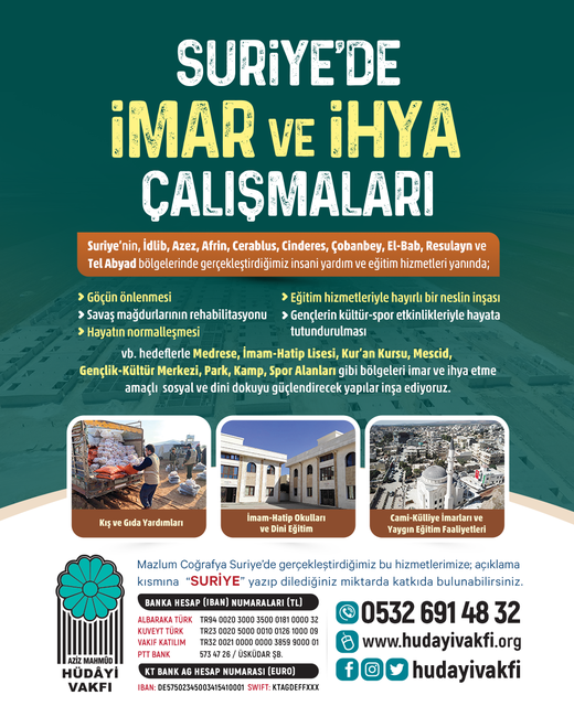 Online Bağış: www.hudayivakfi.org.tr/online_bagis/donation/21/suriye