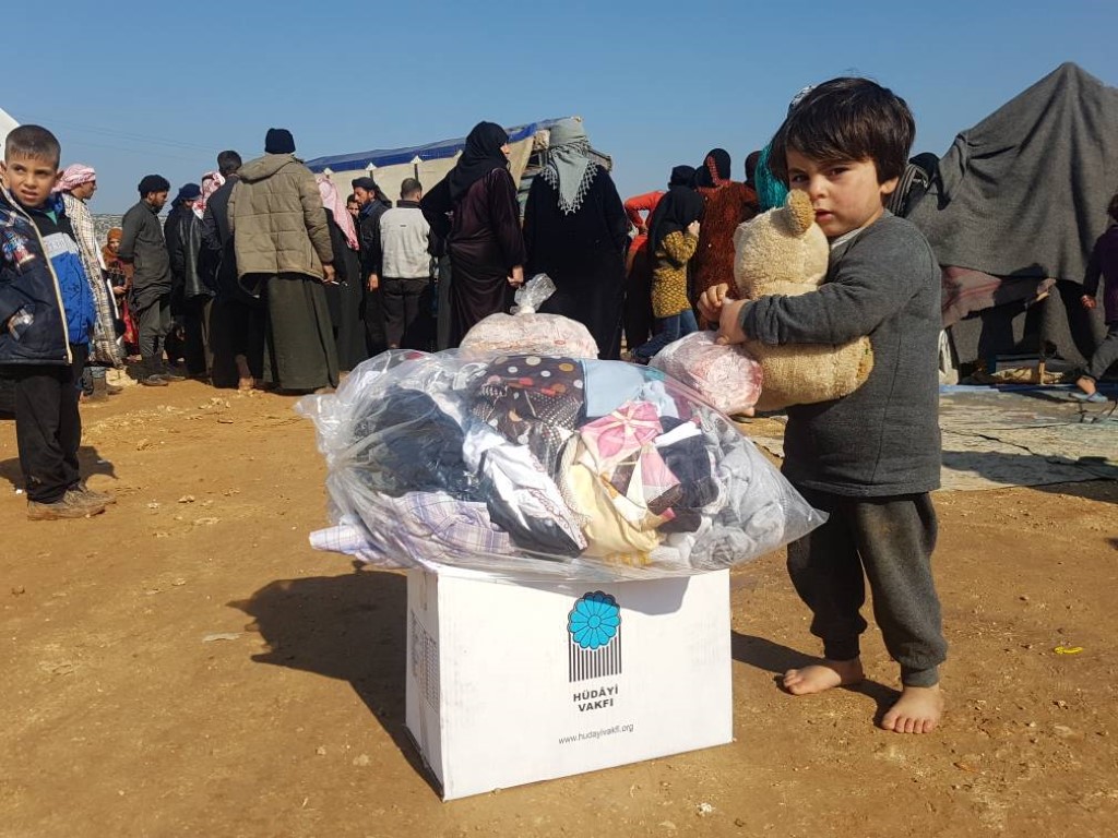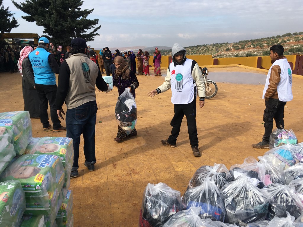 Düzenli olarak bölgeye ulaştırılan yardımlar kapsamında Ocak ve Şubat 2018 aylarında İdlib ve Azez bölgelerine ulaşan ekiplerimiz kamplarda ve çadırlarda zor şartlarda yaşam mücadelesi veren mağdurlara yönelik hazırlanan insani yardım malzemelerini dağıtarak savaştan psikolojik olarak bozulan moral ve motivasyonlarının bir nebze olsun yükselmelerine yardımcı oldular.