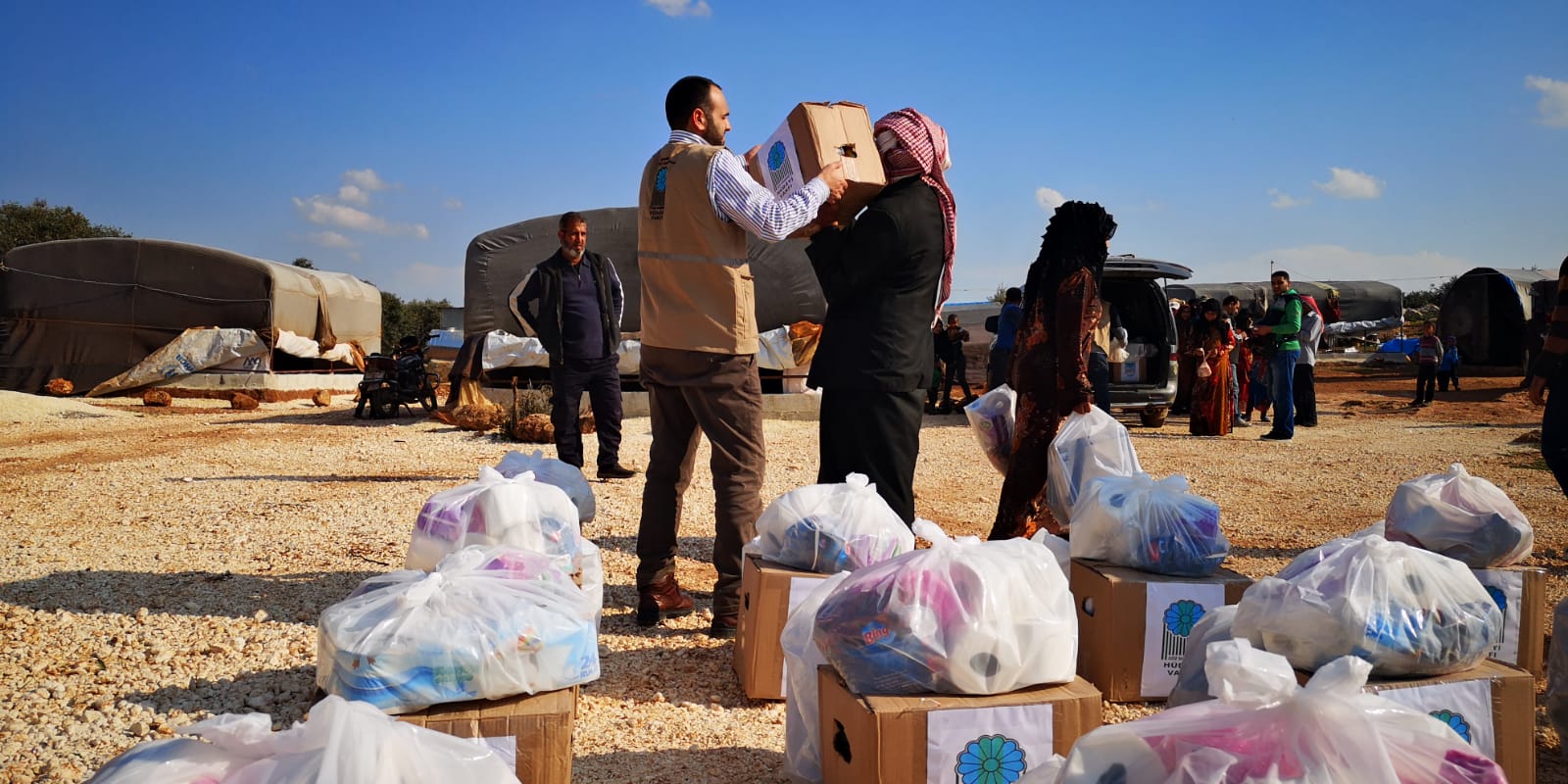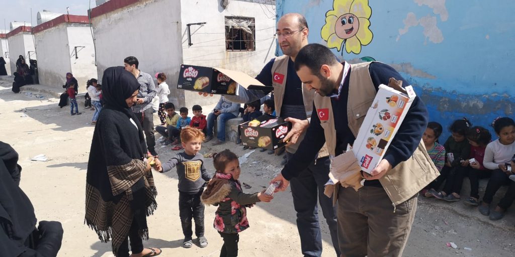 Valilikten aldığımız izinle Reyhanlı-Cilvegözü sınır kapısını kullanarak ilk olarak sınırın öte yakasına adım attık. Güvenlik amacıyla oluşturulan 6 farklı kontrol noktasından geçerek önce İdlib şehir merkezine ardından yardımları dağıtacağımız kırsal alanlara, çadır kamplara ulaştık. Öncelikle şunu açıkça ifade etmeliyim ki; gerek sınırdan giriş ve çıkışlarda gerekse vakfımızın yardımlarını savaşın mağdur ettiği binlerce kişiye ulaştırmada bölgede mesai mefhumu gözetmeksizin çalışan Diyanet Vakfı gibi kamu kurumlarımızın fedakâr çalışanlarına teşekkürü bir borç biliriz. Kendilerinin bizlere çok katkısı oldu. Allah kendilerinden razı olsun.